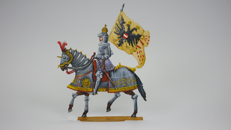 Kaiser Maximilian, Vitrinenfigur, 54mm Reitergröße, Gesamthöhe 80mm, Flachfigur, beidseitig graviert