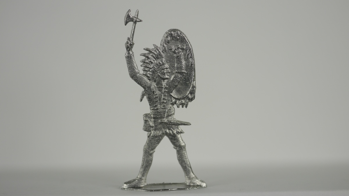 Indianer-Häuptling, Schild und Kriegsbeil erhebend