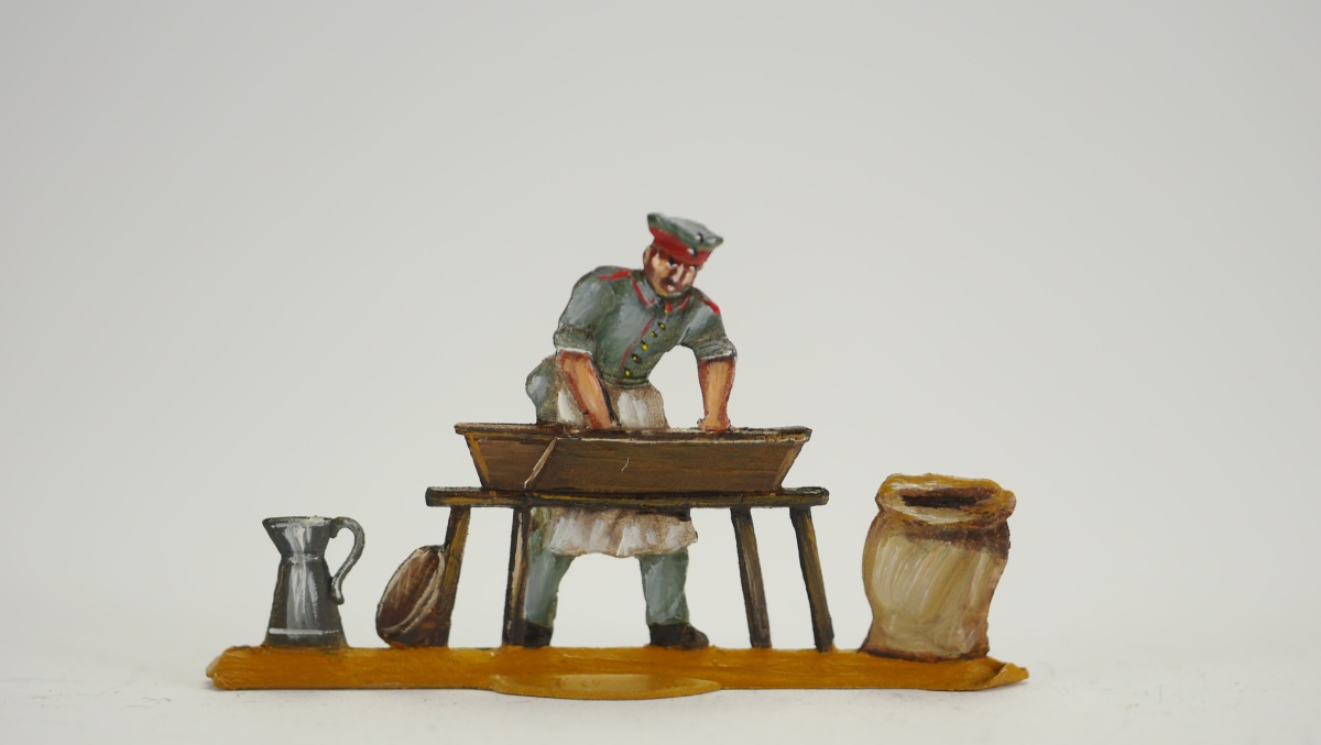 Soldat, Brotteig in Trog knetend