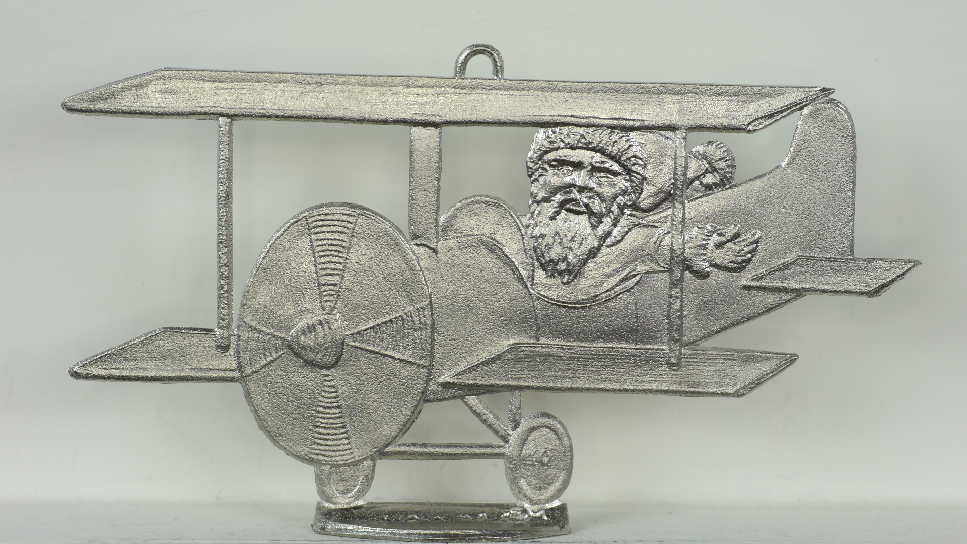 Weihnachtsmann im Flugzeug, beidseitig graviert, stehend/hängend, Höhe ca. 42mm